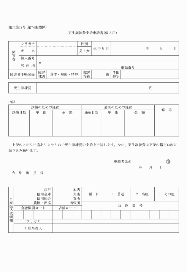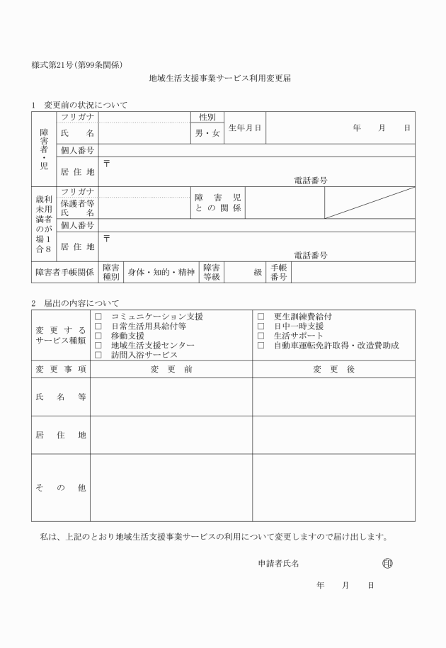 第24条 申請者は、地域生活支援事業サービス利用申請書により町長に申請するものとする。