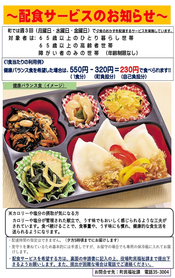 今別町では週3回(月曜日・水曜日・金曜日)で夕食のおかずを配膳するサービスを実施しています。
