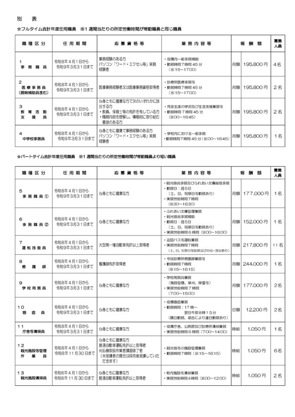 今別町では、令和8年度今別町会計年度任用職員を募集します。
